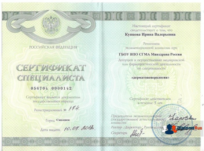 Медицинский сертификат специалиста